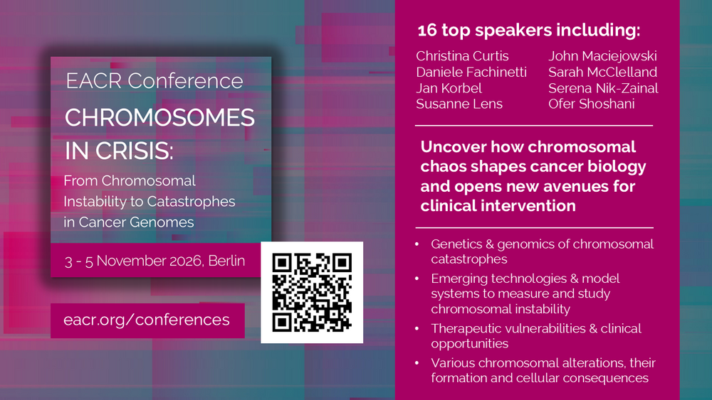 Want to learn more about chromosomal instability to catastrophes in cancer genomes? Join the EACR in Berlin from 03-05 Nov 2026! www.eacr.org/conference/chromosomesincrisis2026