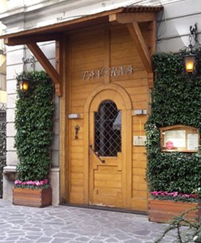 It takes less than 10 minutes to walk from the conference venue to the dinner venue. Head north-west on Viale Papa Giovanni XXIII, turn left onto Largo Porta Nuova which becomes Via G. Tiraboschi. The entrance to the Taverna is just down the side street called Passeggiata Zeduri.