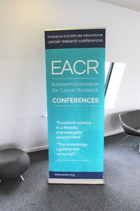 If you are a solo traveller, attending the conference on your own, then please feel free to join us at the EACR Banner (pictured) near the registration desk at the afternoon coffee break on Day 1 (between 14:50-15:20) to connect with fellow solo attendees. Our friendly EACR staff will be on hand to assist you, answer questions, provide a map of the local area and offer insights into local dining spots and noteworthy attractions.