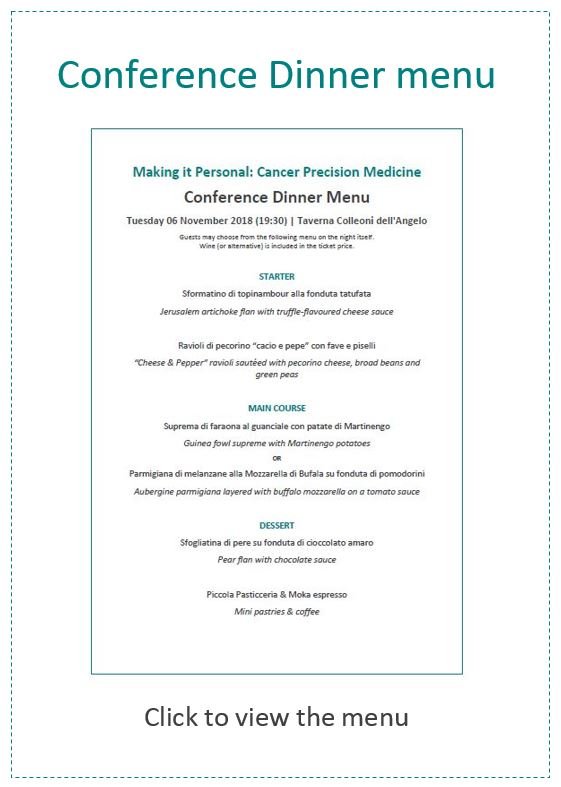 Tickets for the conference dinner are not included in the registration fee and can be purchased as an optional extra for €61.